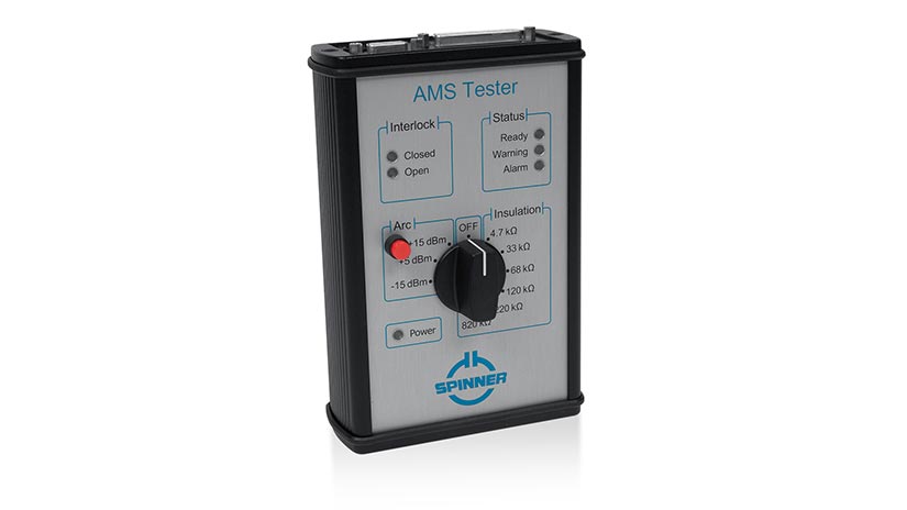 - Einem AMS-Tester, der Lichtbögen und Wassereintritt simuliert und zur Prüfung des Antennenüberwachungssystems verwendet wird.