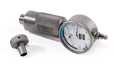 Ein Endmaß zur Kontrolle und Kalibrierung der Messuhr gehört zum Lieferumfang. SPINNER liefert Messuhren für viele koaxiale Steckerserien.